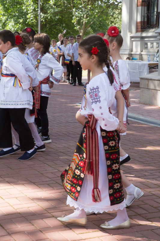 Programul artistic oferit de copiii din clasele primare ale Seminarului gălăţean a fost dedicat Centenarului Marii Uniri şi a cuprins momente poetice, cântece şi dansuri populare românești.