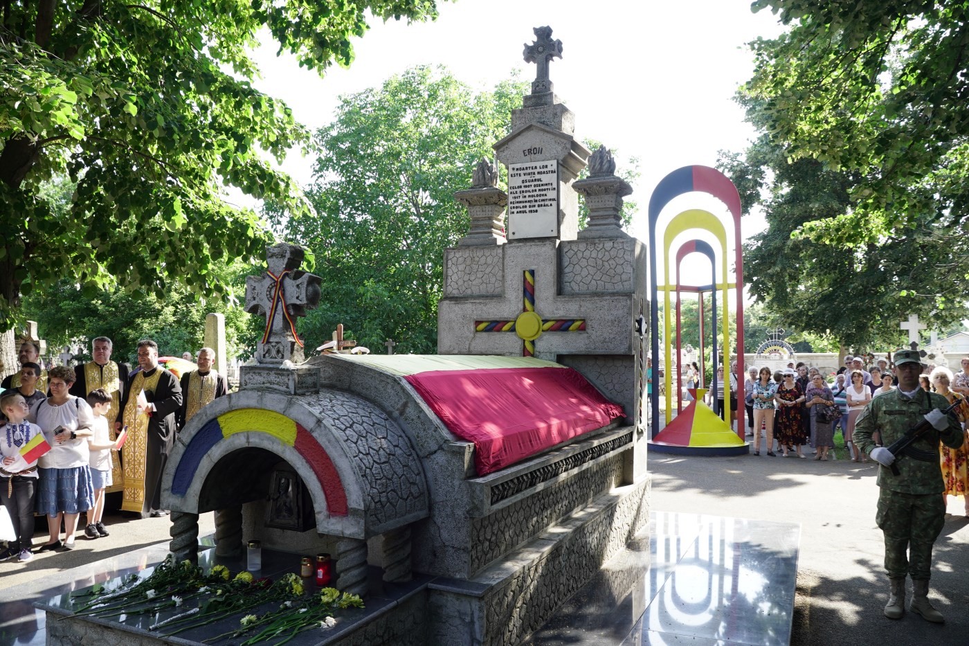 La final, au fost depuse jerbe şi coroane de flori, au fost trase trei salve de foc, iar pe aleea principală a cimitirului a avut loc defilarea gărzii de onoare în acordurile muzicii militare.