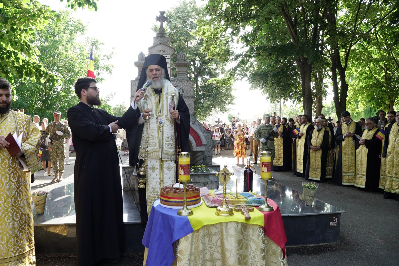 Chiriarhul locului împreună cu slujitorii sfintelor altare, foarte mulţi credincioşi, tineri seminarişti şi mulţi elevi de la şcolile gălăţene cu steguleţe tricolor în mâini au mers până la monumentul închinat Eroilor Neamului din cimitirul central al oraşului Galaţi.
