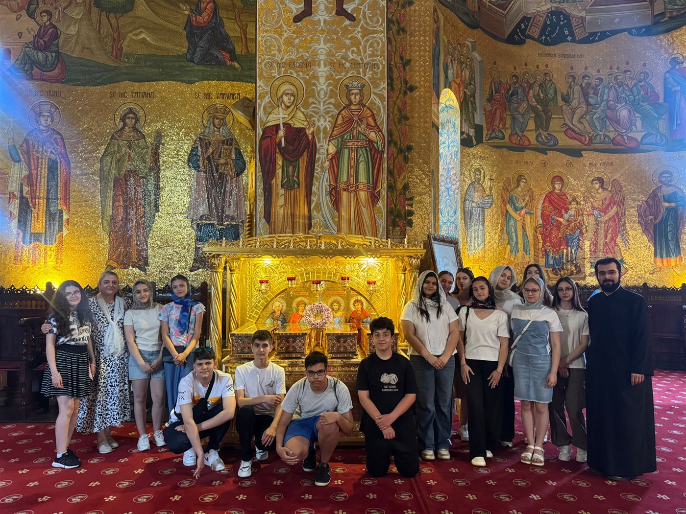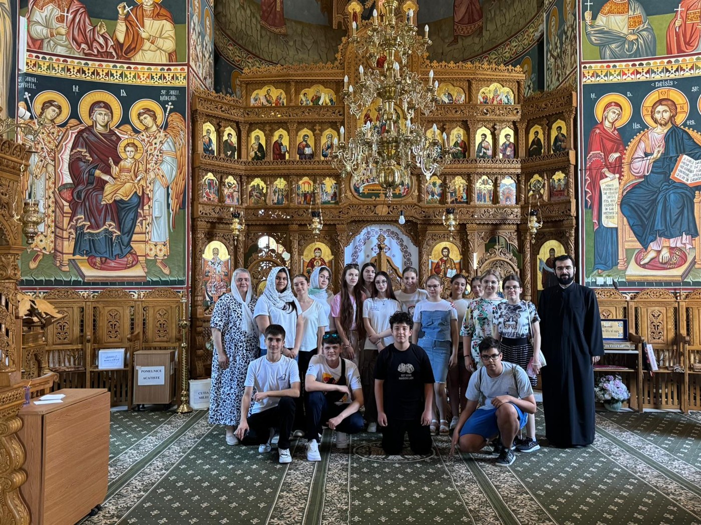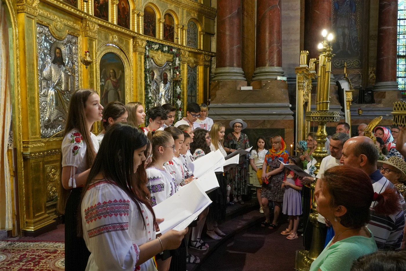 Elevii prezenţi la slujbă au interpretat la chinonic pricesne şi alte cântări bisericeşti.