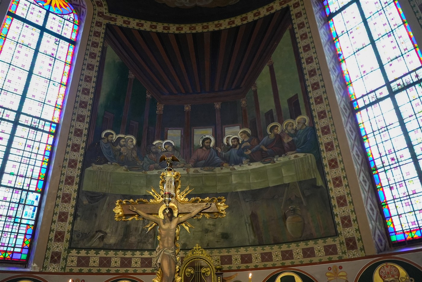 După finalizarea lucrărilor de construcție, lăcașul a fost înfrumusețat cu vitralii realizate la Viena, de către Petre Bancotescu.