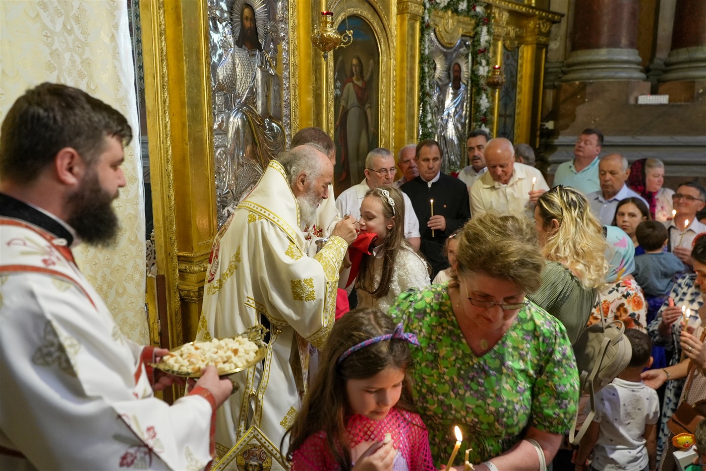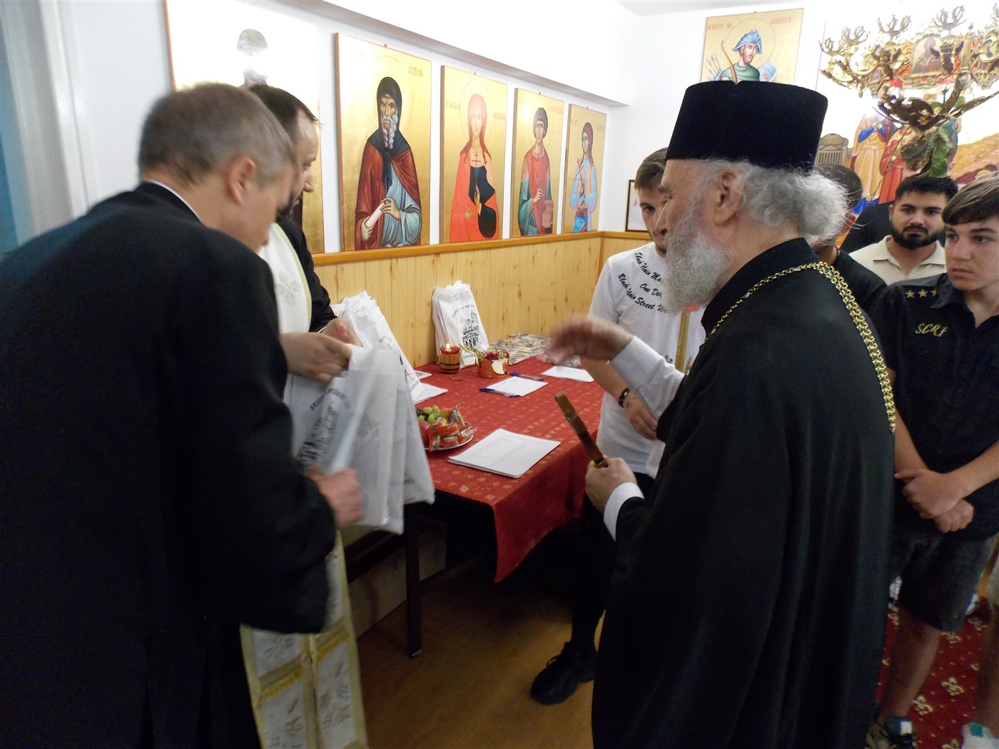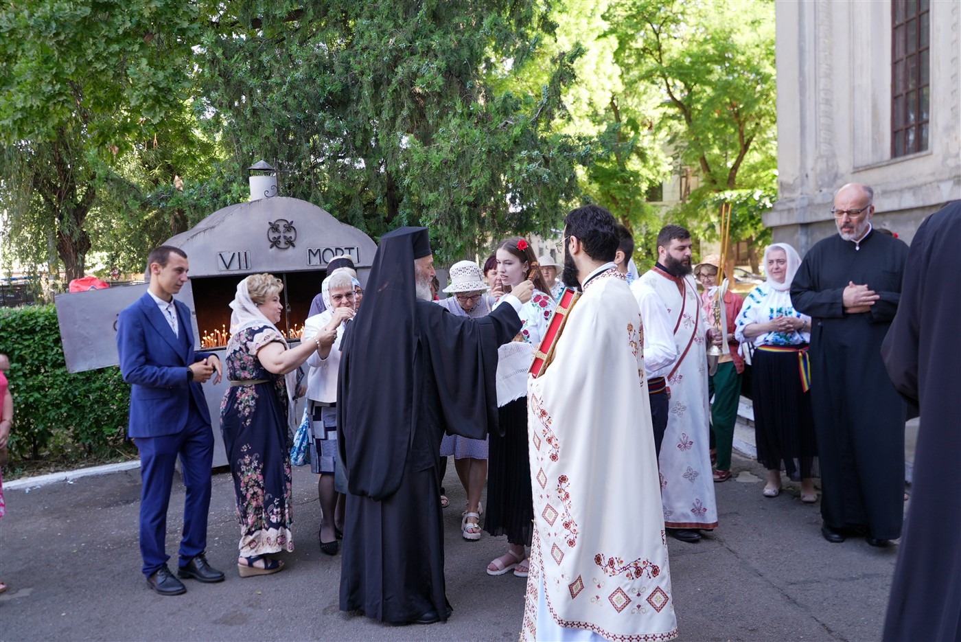După Sfânta Liturghie, ierarhul locului a oficiat slujba Parastasului pentru ctitorii, donatorii şi binefăcătorii sfântului locaş şi le-a oferit cărţi de rugăciune şi alte daruri copiilor din Grupul catehetic al acestei parohiei.