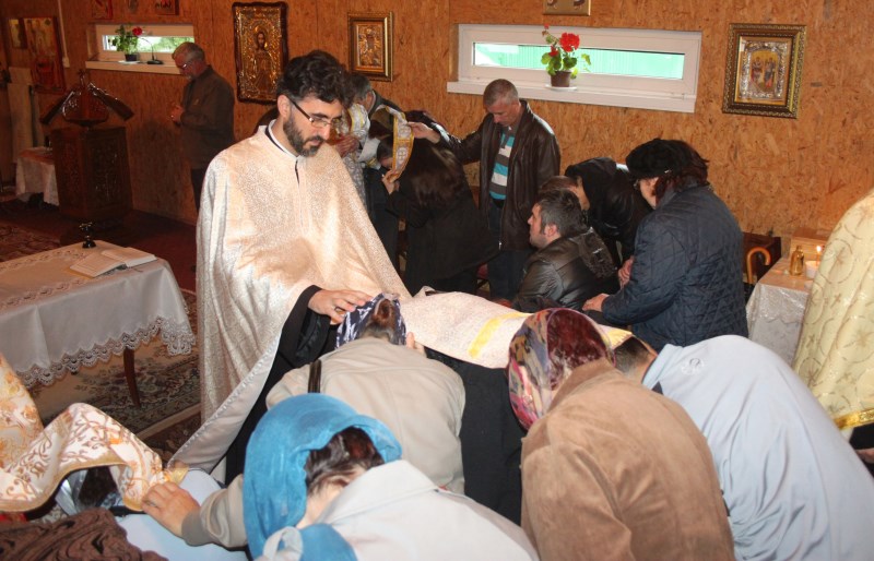 După săvârşirea Sfintei Liturghii, programul liturgic a continuat cu oficierea Tainei Sf. Maslu, după care au fost rostite rugăciuni pentru felurite boli şi neputinţe trupeşti de către un sobor de preoți, în frunte cu pc. pr. Ionel Rotaru, consilier social şi delegat eparhial.