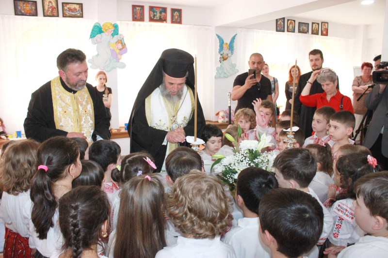Slujba a fost săvârşită de Înaltpreasfinţitul Părinte Arhiepiscop Casian, în prezenţa copiilor, a părinţilor şi a profesorilor voluntari.