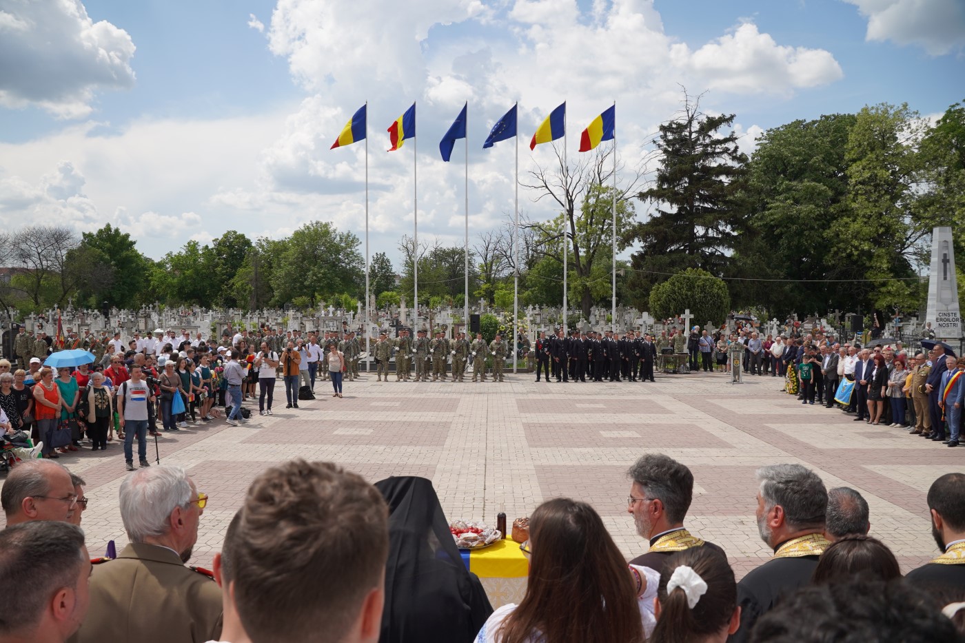 În prelungirea Sfintei Liturghii a fost organizată tradiţionala procesiune închinată eroilor patriei.