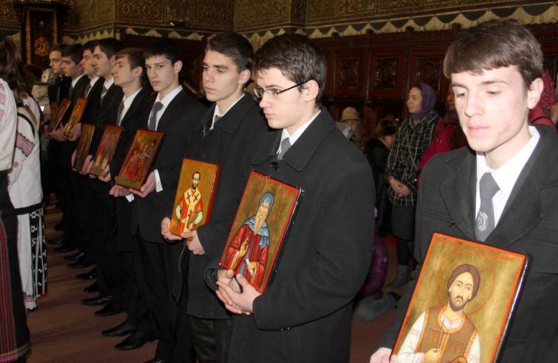 La momentul liturgic potrivit, tinerii iconari au fost împărtăşiţi cu Sfintele Taine de către Chiriarhul Dunării de Jos, după care, pe solee, au prezentat credincioşilor prezenţi icoanele lor.