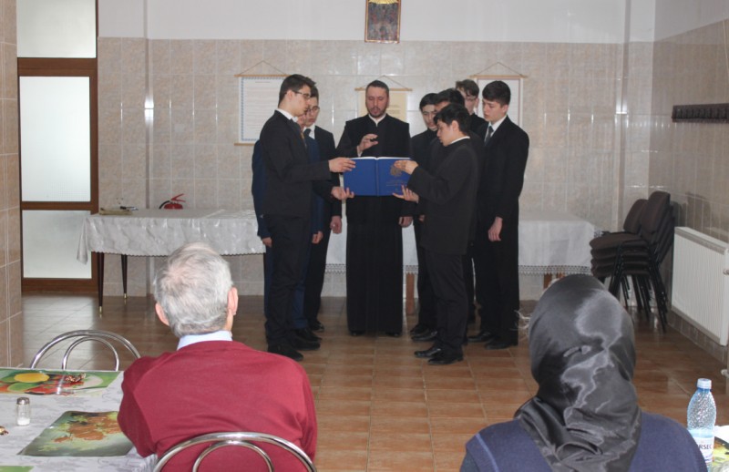 Programul a debutat cu săvârşirea unei slujbe de mulţumire pentru toate binefacerile revărsate de Dumnezeu asupra persoanelor ocrotite în acest centru, după care o parte din corul Seminarului Teologic „Sf. Apostol Andrei“ din Galaţi, coordonaţi de pc. arhid. prof. Adrian Marin, au interpretat câteva imne bizantine şi cântece religioase închinate Maicii Domnului.