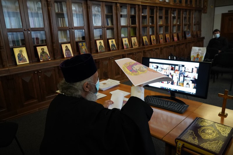 Întrunirea a fost prezidată de Înaltpreasfinţitul Părinte Casian, Arhiepiscopul Dunării de Jos, şi s-a desfăşurat în Sala „Episcop Chesarie Păunescu“ a Centrului Eparhial prin intermediul unui platforme de comunicare on-line.