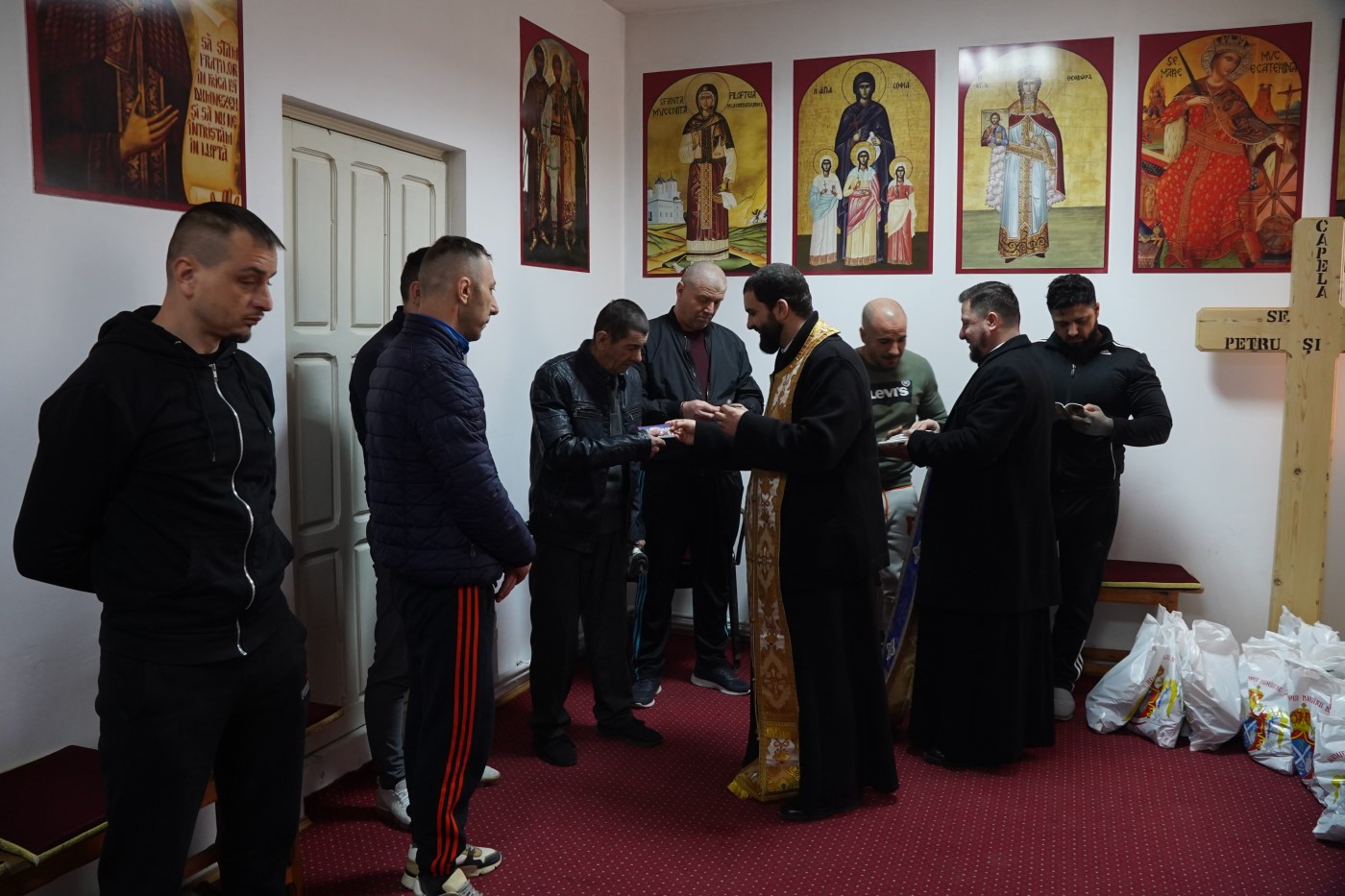 După ce au săvârşit o slujbă de mulţumire şi au rostit rugăciunile speciale pentru cei aflaţi în temniţe, preoţii prezenţi i-au miruit pe deţinuţi şi le-au oferit darurile pregătite special pentru ei, respectiv articole vestimentare, produse igienico-sanitare, încălţăminte, cărţi de rugăciune, iconiţe şi cruciuliţe.