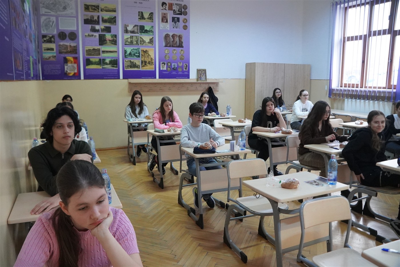 După momentele de înălţare duhovnicească din biserică, elevii au susţinut proba de examen la Colegiul Naţional „Nicolae Iorga”.