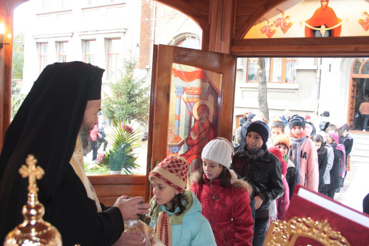 Înaintea slujbei de sfinţire ierarhul Dunării de Jos le-a vorbit copiilor prezenţi despre viaţa Sfântului Ioan cel Milostiv, pe înţelesul lor, folosindu-se de repere din experienţa lor de zi cu zi. Şi pentru ca învăţătura oferită să fie percepută şi mai temeinic de copiii, Înaltpreasfinţia Sa a adus şi o părticică din moaştele Sfântului Ioan, înaintea căreia toţi cei prezenţi s-au putut închina. A urmat apoi ungerea cu untdelemn sfinţit a paraclisului la exterior şi la interior şi stropirea cu aghiazmă.