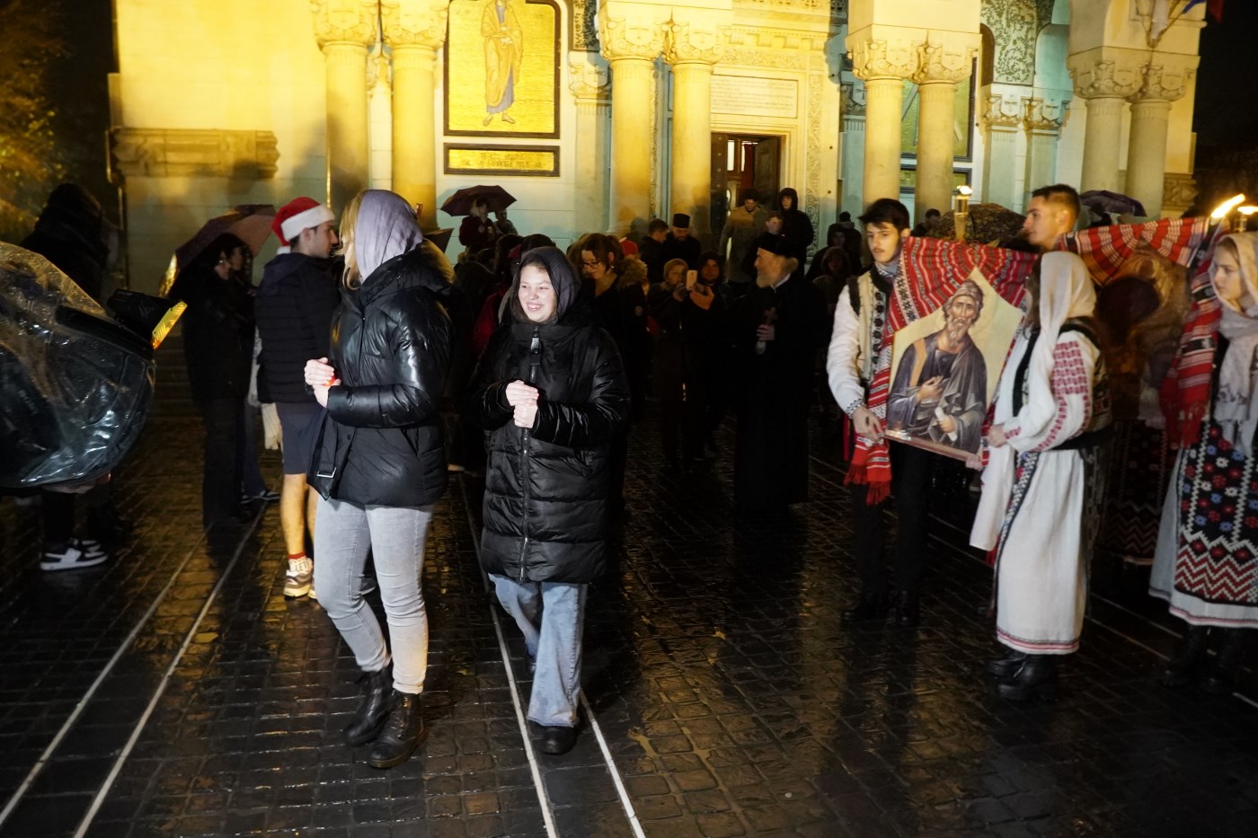 De la Catedrala Arhiepiscopală, tinerii entuziaşti cu icoana celui dintâi chemat dintre Apostoli, cu torţe şi lumânări aprinse în mâini au plecat către Capela Seminarului Teologic Ortodox ocrotită de Sfântul Apostol Andrei, intonând pe tot parcursul procesiunii troparele Sfântului Apostol Andrei, ale Sfântului Cuvios Ioan Damaschin şi alte cântări bisericeşti.