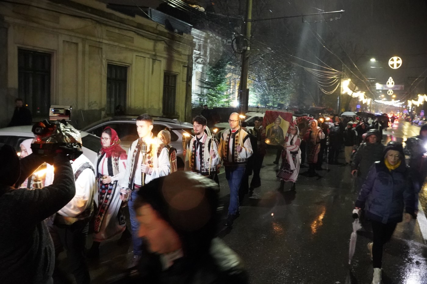 La procesiune a fost prezent şi Înaltpreasfinţitul Părinte Casian, Arhiepiscopul Dunării de Jos, în fruntea celor peste 300 de tineri studenţi din Galaţi şi din Republica Moldova, unii dintre ei îmbrăcaţi în tradiţionalul port popular românesc.