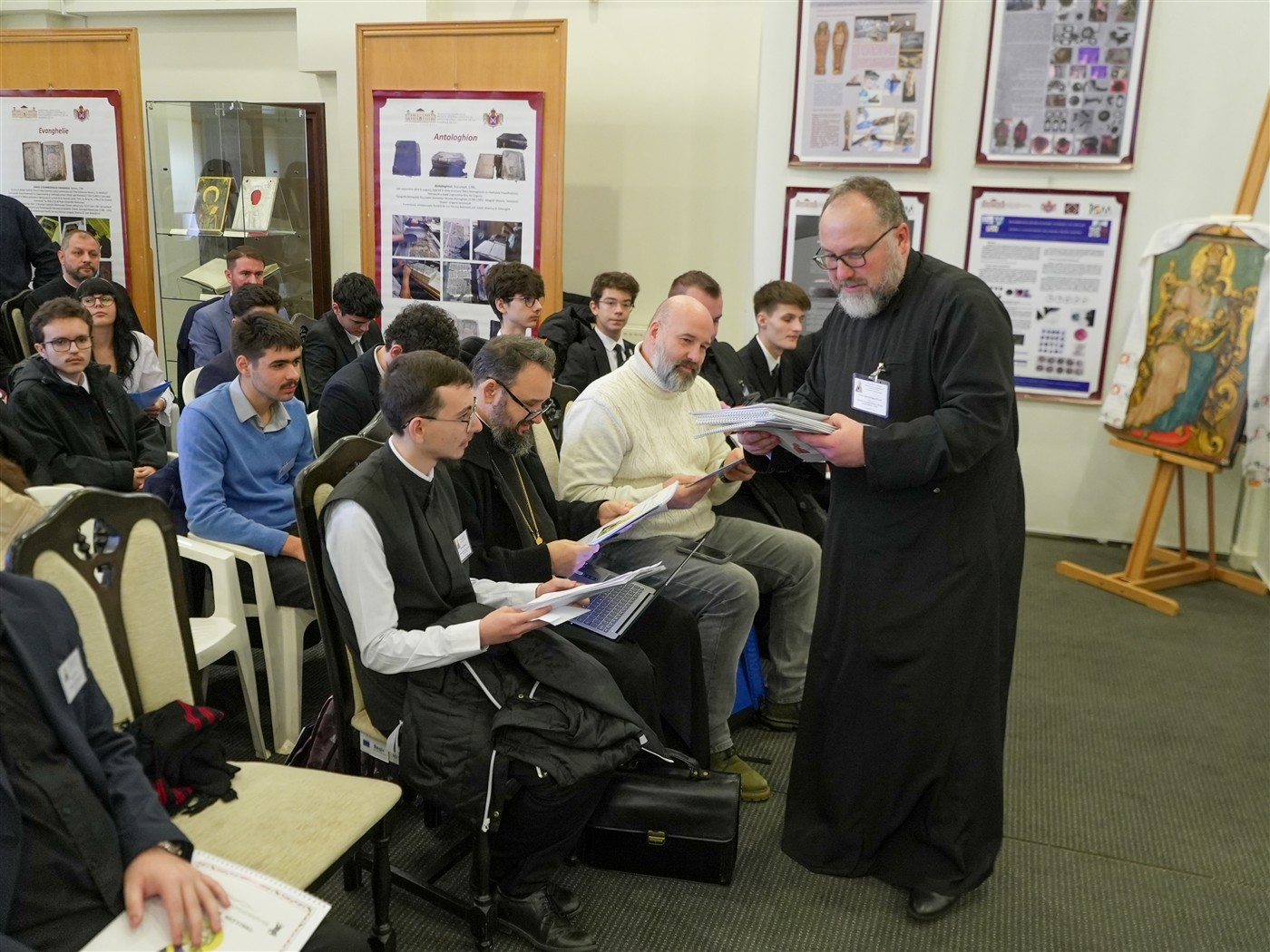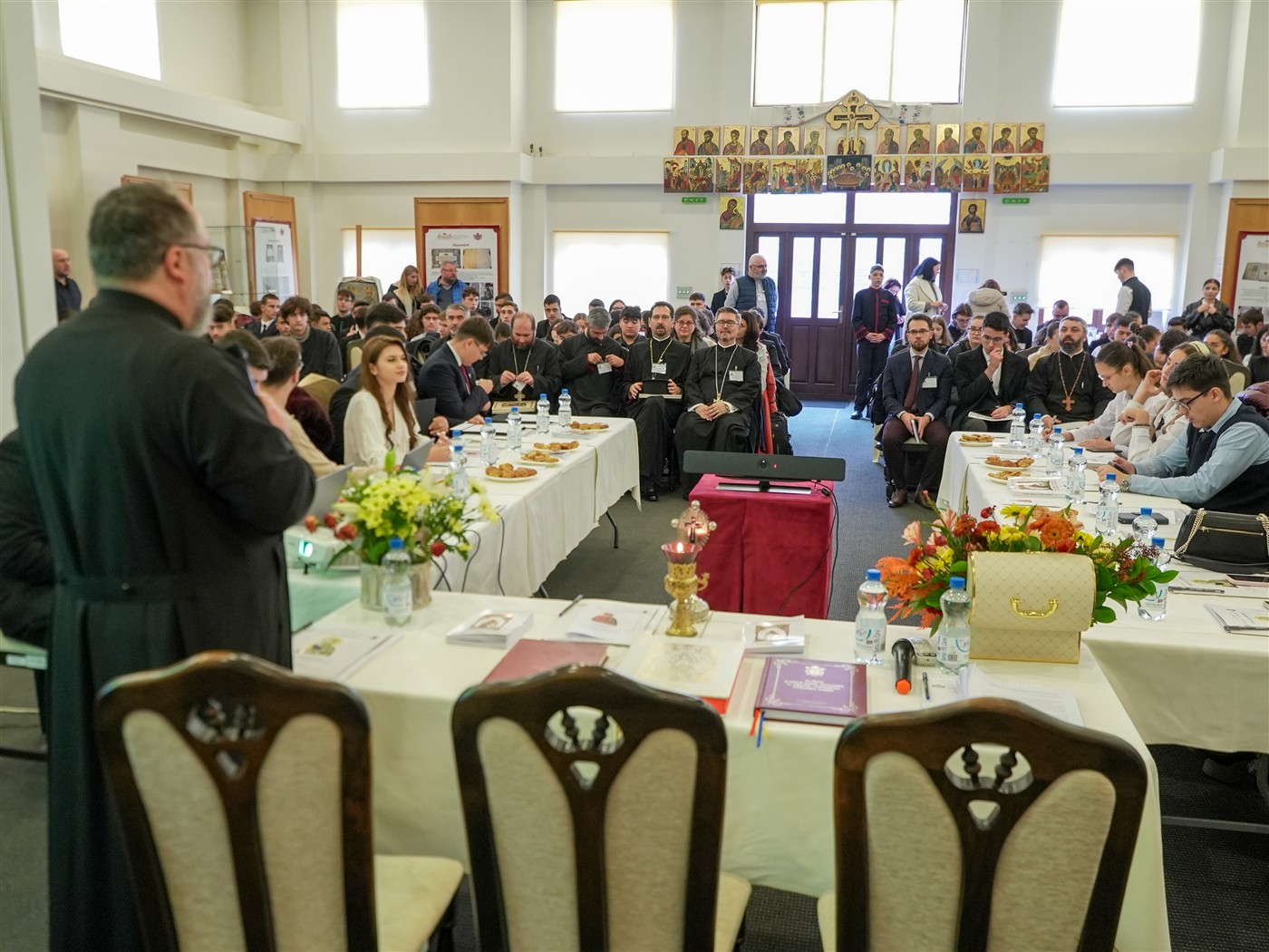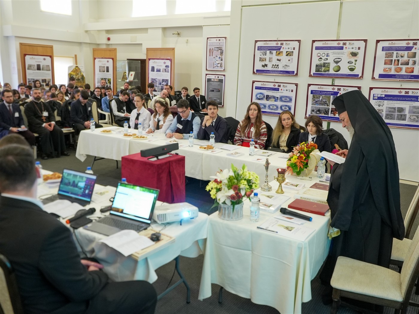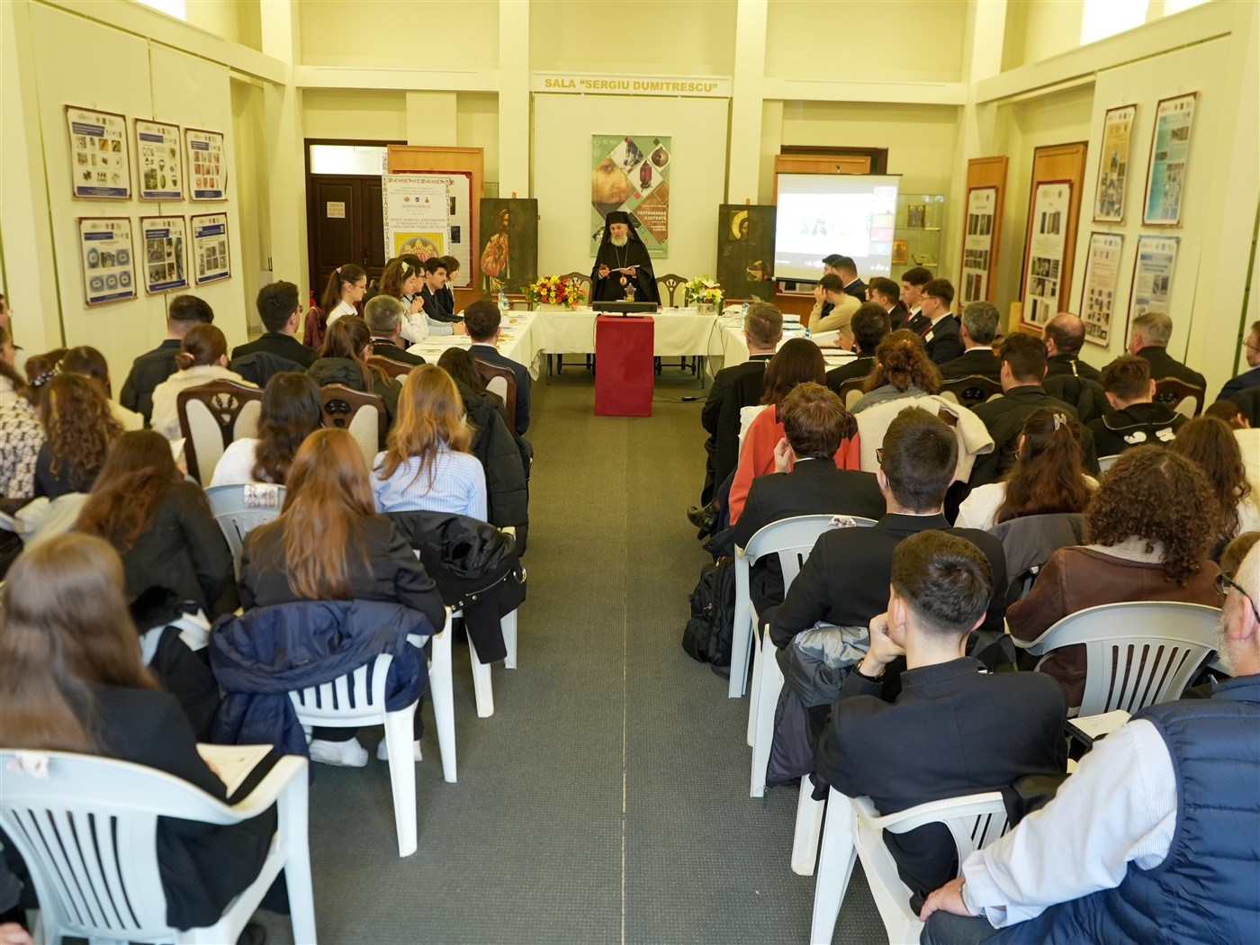 Dezbaterile întrunirii teologice s-au desfăşurat în format hibrid în Sala de Expoziţii temporare „Sergiu Dumitrescu“ din cadrul Muzeului Istoriei, Culturii şi Spiritualităţii Creştine de la Dunărea de Jos.