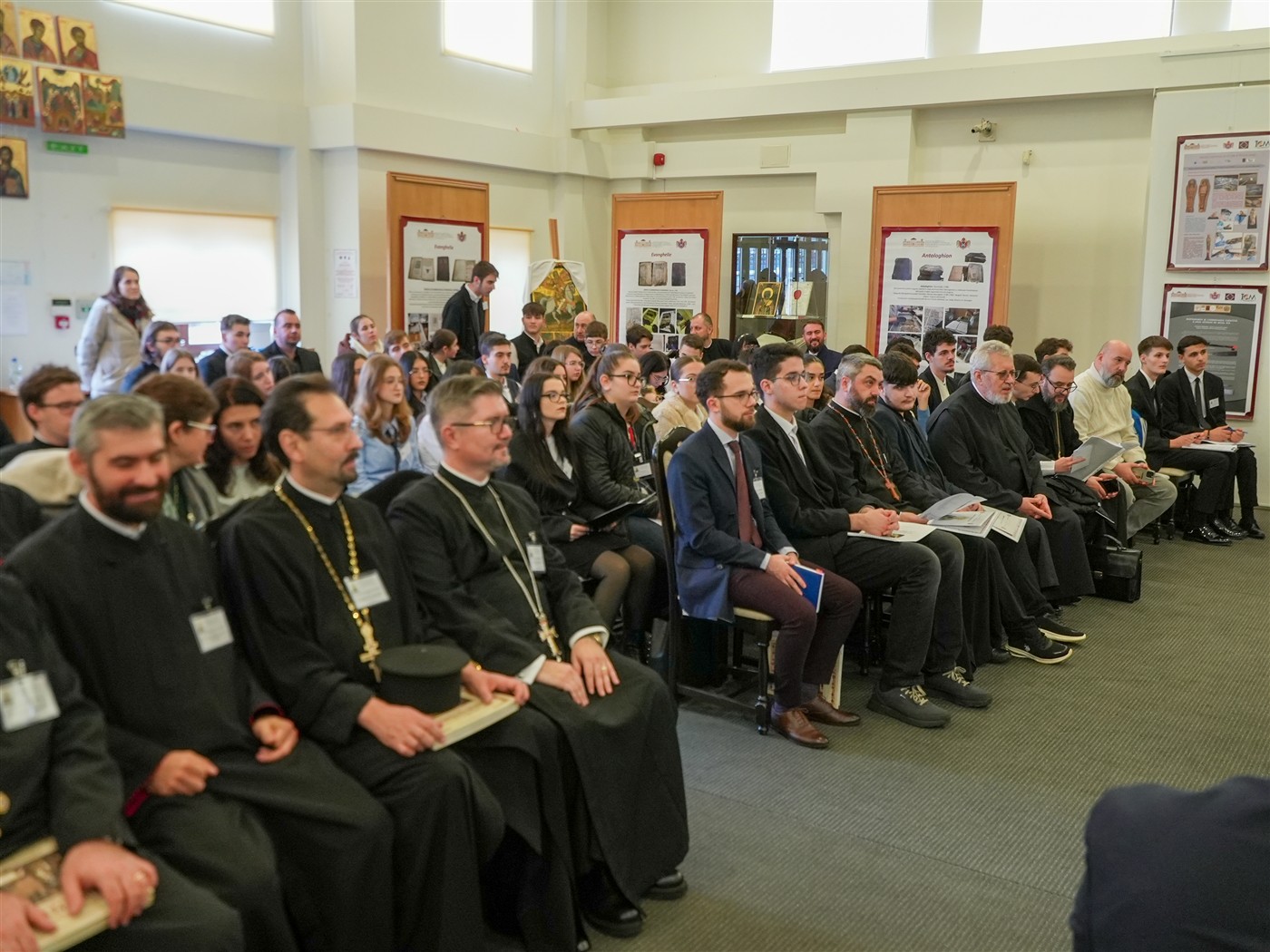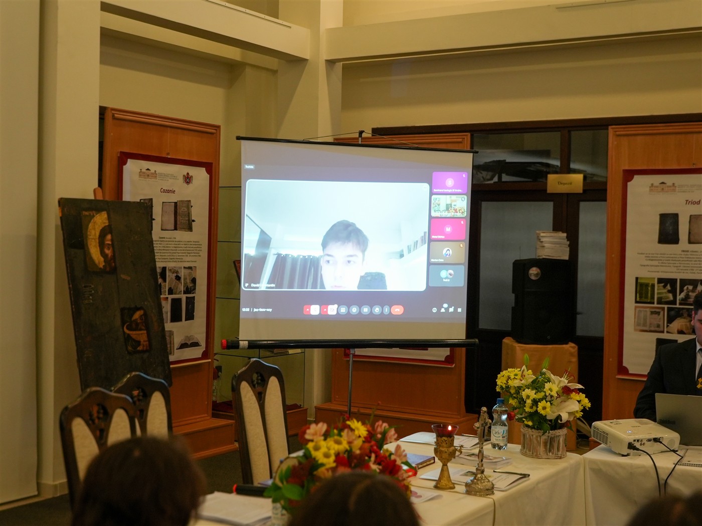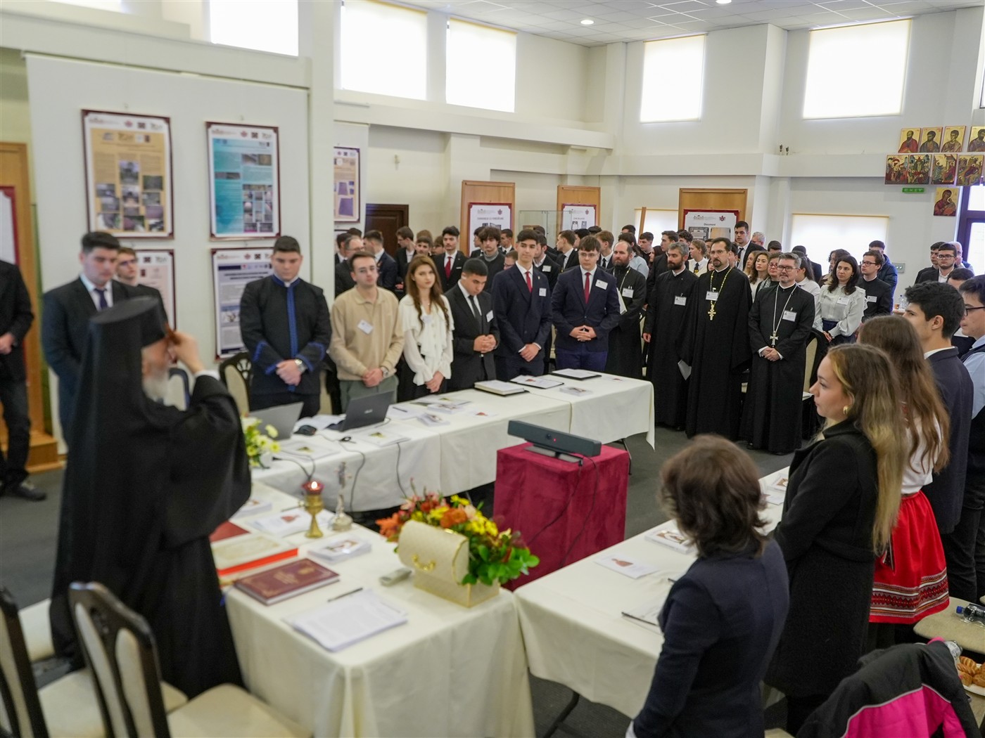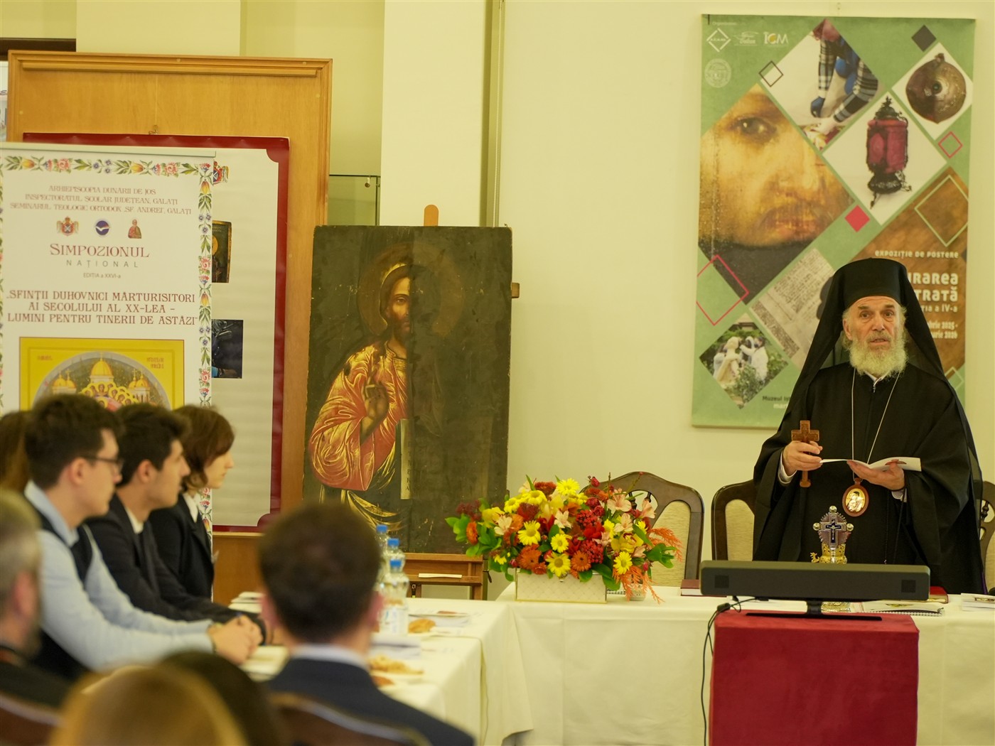 Dezbaterile întrunirii teologice s-au desfăşurat în format hibrid în Sala de Expoziţii temporare „Sergiu Dumitrescu“ din cadrul Muzeului Istoriei, Culturii şi Spiritualităţii Creştine de la Dunărea de Jos.