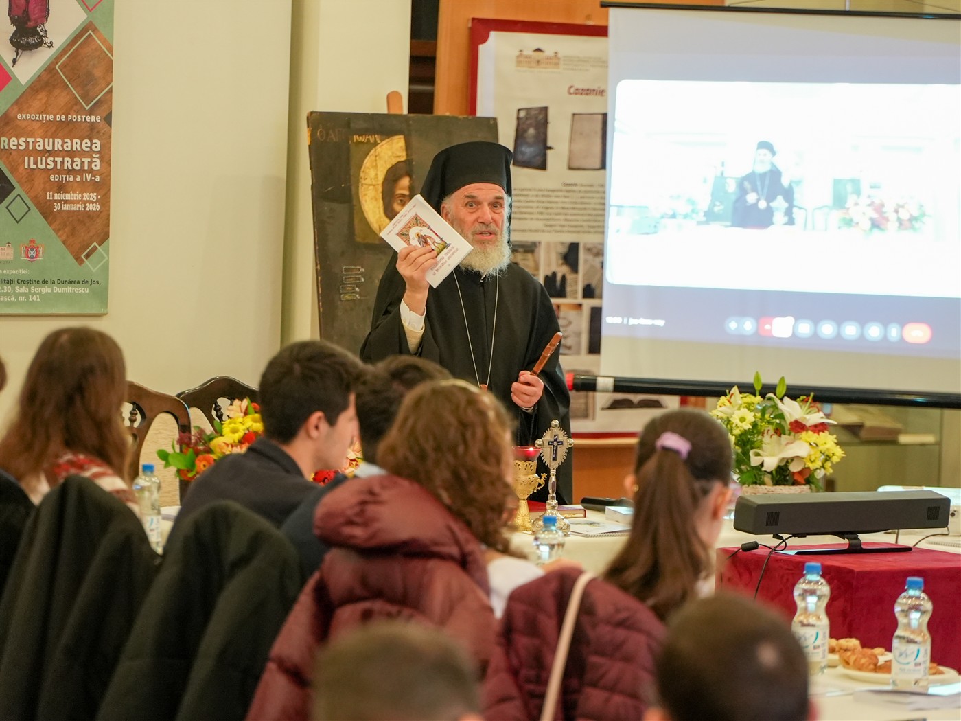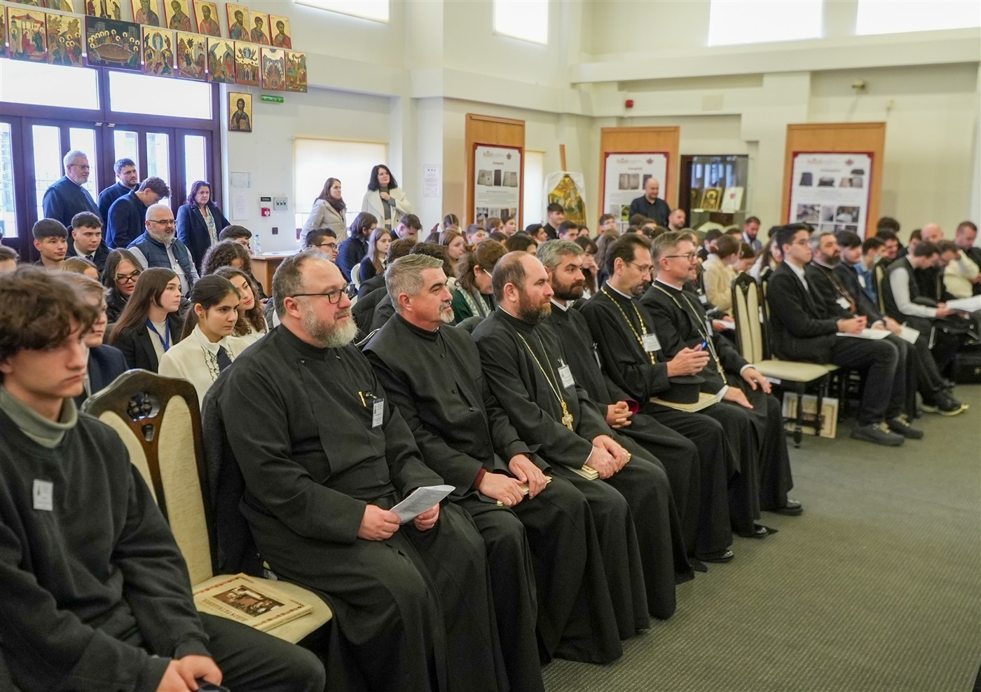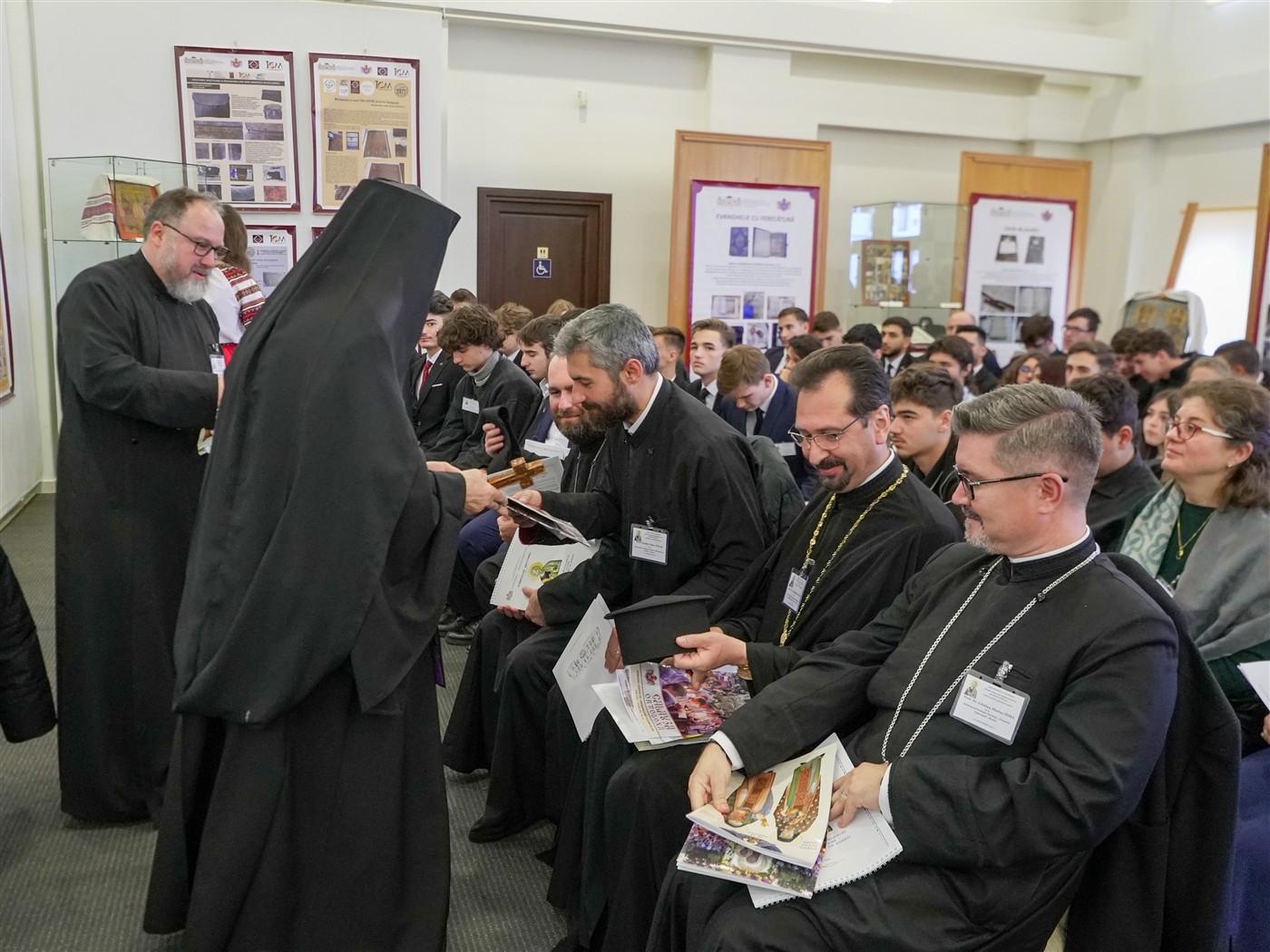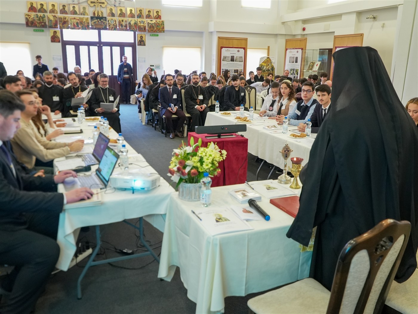 Dezbaterile întrunirii teologice s-au desfăşurat în format hibrid în Sala de Expoziţii temporare „Sergiu Dumitrescu“ din cadrul Muzeului Istoriei, Culturii şi Spiritualităţii Creştine de la Dunărea de Jos.