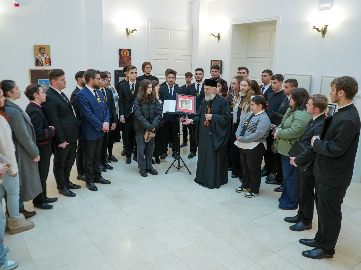 Ierarhul locului le-a adresat celor prezenţi un cuvânt de binecuvântare şi de apreciere pentru organizarea acestui frumos eveniment în care se poate vedea frumuseţea exprimată prin icoană în cadrul unui popas spre sărbătoarea ocrotitorului spiritual al municipiului Galaţi.