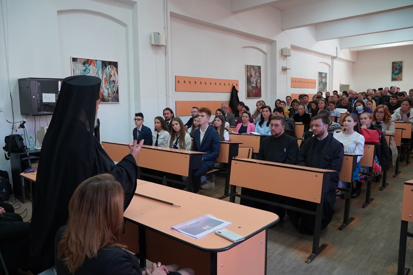 În continuare, vis-a-vis de Catedrala Arhiepiscopală, în Aula AN 113 din cadrul Facultăţii de Inginerie din Galaţi, s-a desfăşurat şedinţa propriu-zisă prezidată de chiriarhul locului.