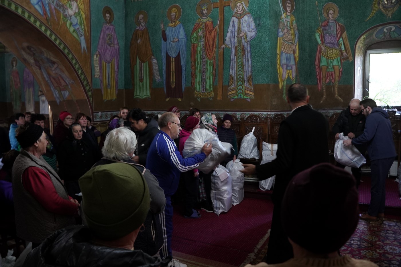 Înainte de a intra în posesia darurilor, beneficiarii au fost binecuvântaţi de preoţii lor în biserici şi s-au rugat cu toţii Milostivului Dumnezeu.