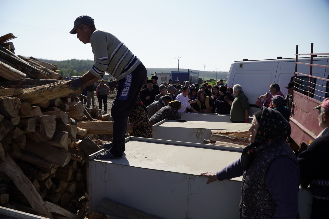 Astăzi, 23 octombrie, alte trei tiruri pline cu lemne din judeţul Vrancea au ajuns în zona sinistrată, în piaţa din centrul comunei Costache Negri, şi au fost preluate de reprezentanţii Protoieriei Covurlui pentru a fi distribuite familiilor sinistrate.