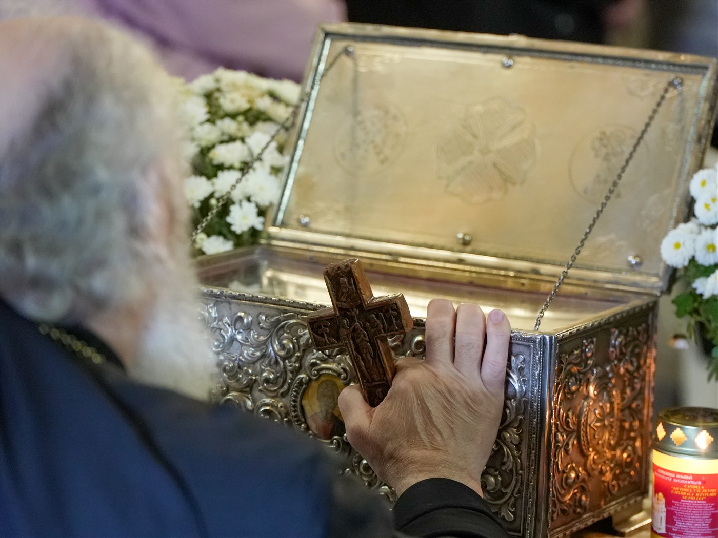 La final, toţi cei prezenţi s-au închinat la o părticică din moaştele Sfântului Apostol Andrei, adusă în locaşul de cult pentru venerare din patrimoniul sacru al Reşedinţei arhiepiscopale.