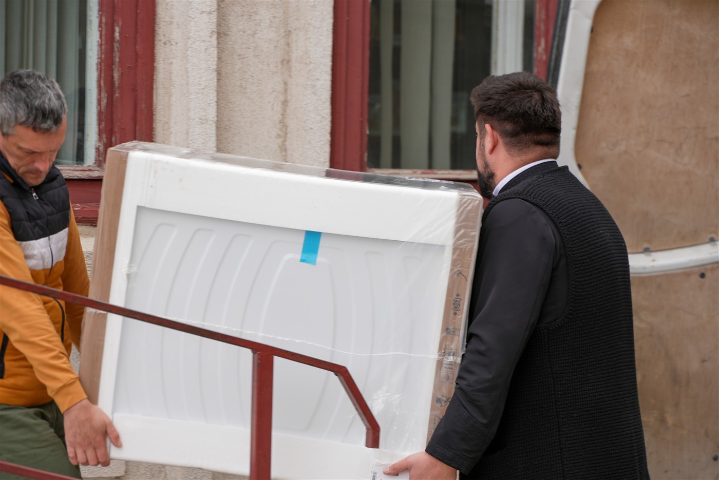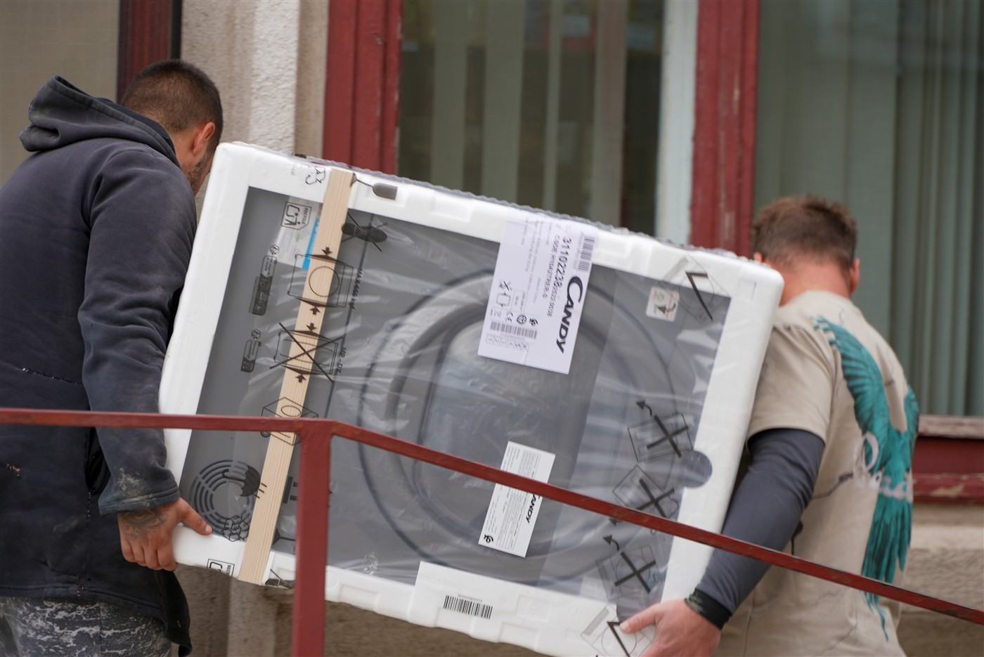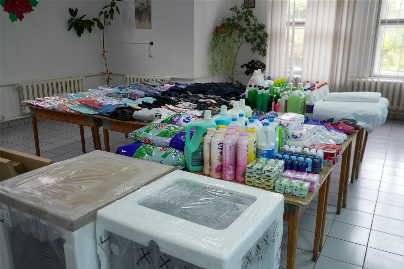 De asemenea, parohia a mai dăruit acestui centru social şi o maşină de spăla, un uscător de rufe, detergenţi, clor şi balsam pentru rufe.