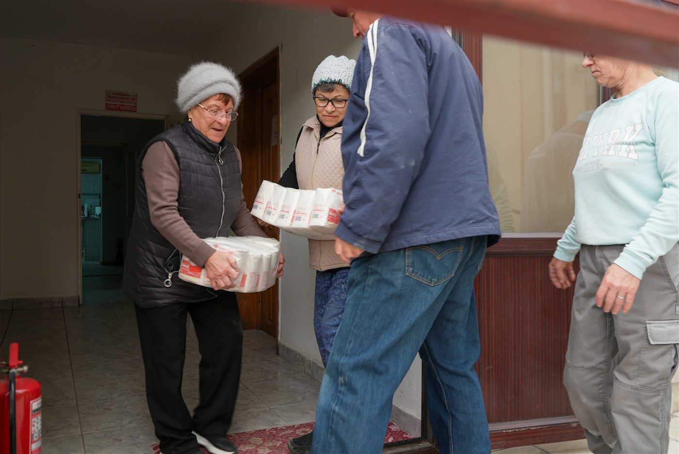 După ce au pregătit darurile, protul paroh împreună cu voluntari din cadrul acestei parohii s-au deplasat la respectiva instituţie socială Galaţi pentru a oferi pachetele cu produse de igienă, articole vestimentare şi alimente neperisabile.