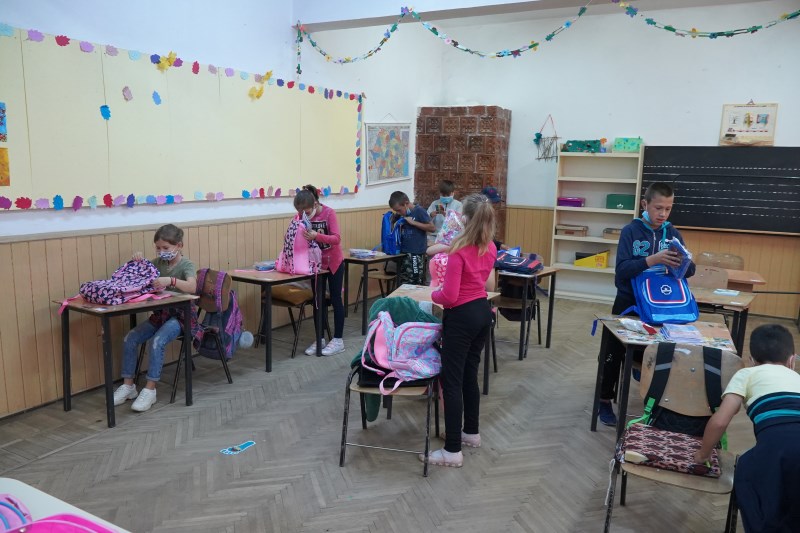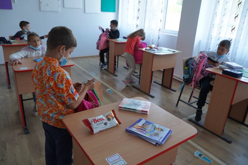 Darurile pregătite special pentru copii au fost oferite de preoţi în incinta şcolilor cu respectarea normelor în vigore privind protecţia împotriva noului coronavirus.