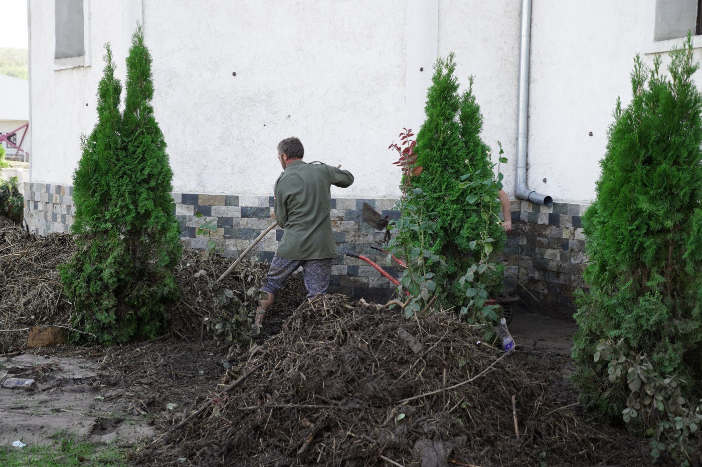 Pentru o mobilizare şi coorodonare eficientă, la faţa locului a ajuns Părintele Arhiepicop Casian, care a organizat mai multe echipe de intervenţie la casele şi bisericile din zonă pentru a scoate mâlul şi a face o necesară curăţenie.