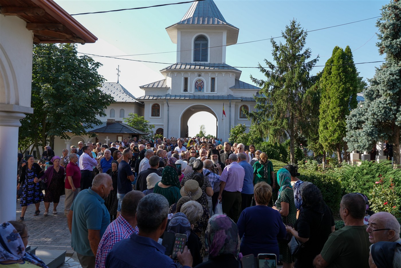 La slujbă au participat copii din localităţile învecinate, obştea monahală şi numeroşi credincioşi veniţi din multe zone ale eparhiei pentru a se ruga Maicii Domnului, ocrotitoarea spirituală a mănăstirii şi Maica cea mult iubitoare a întregii lumi.